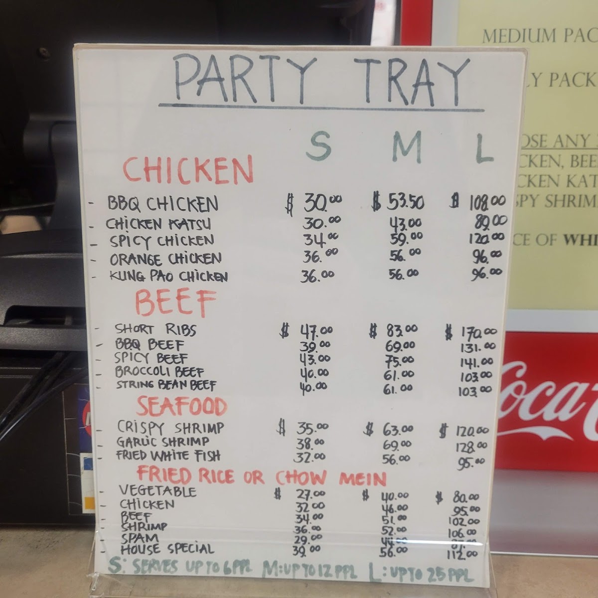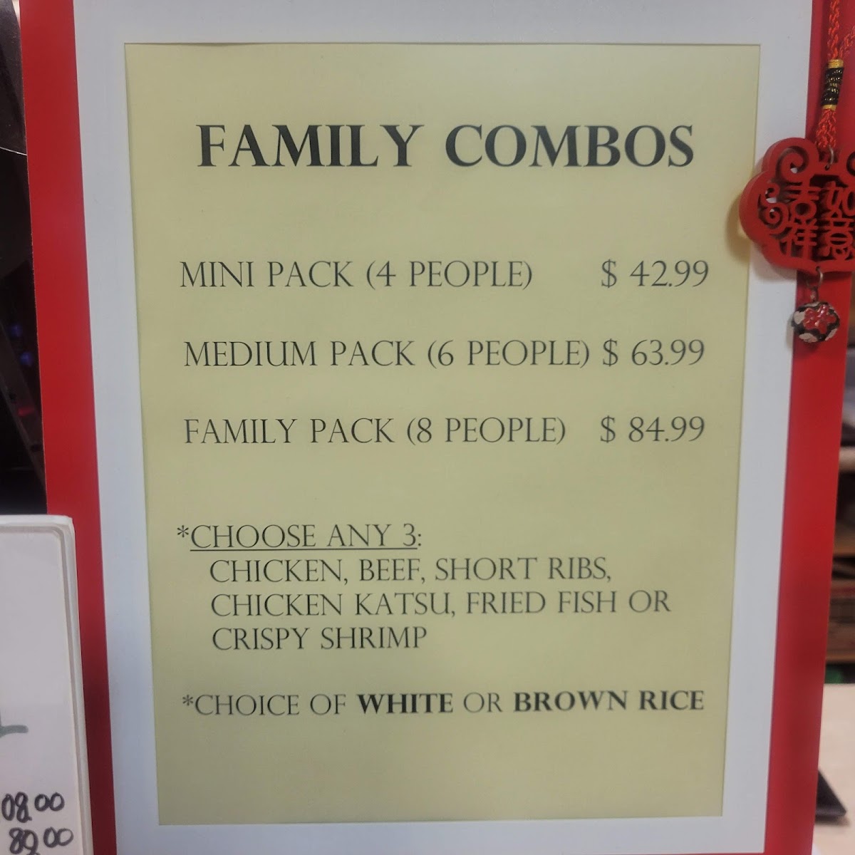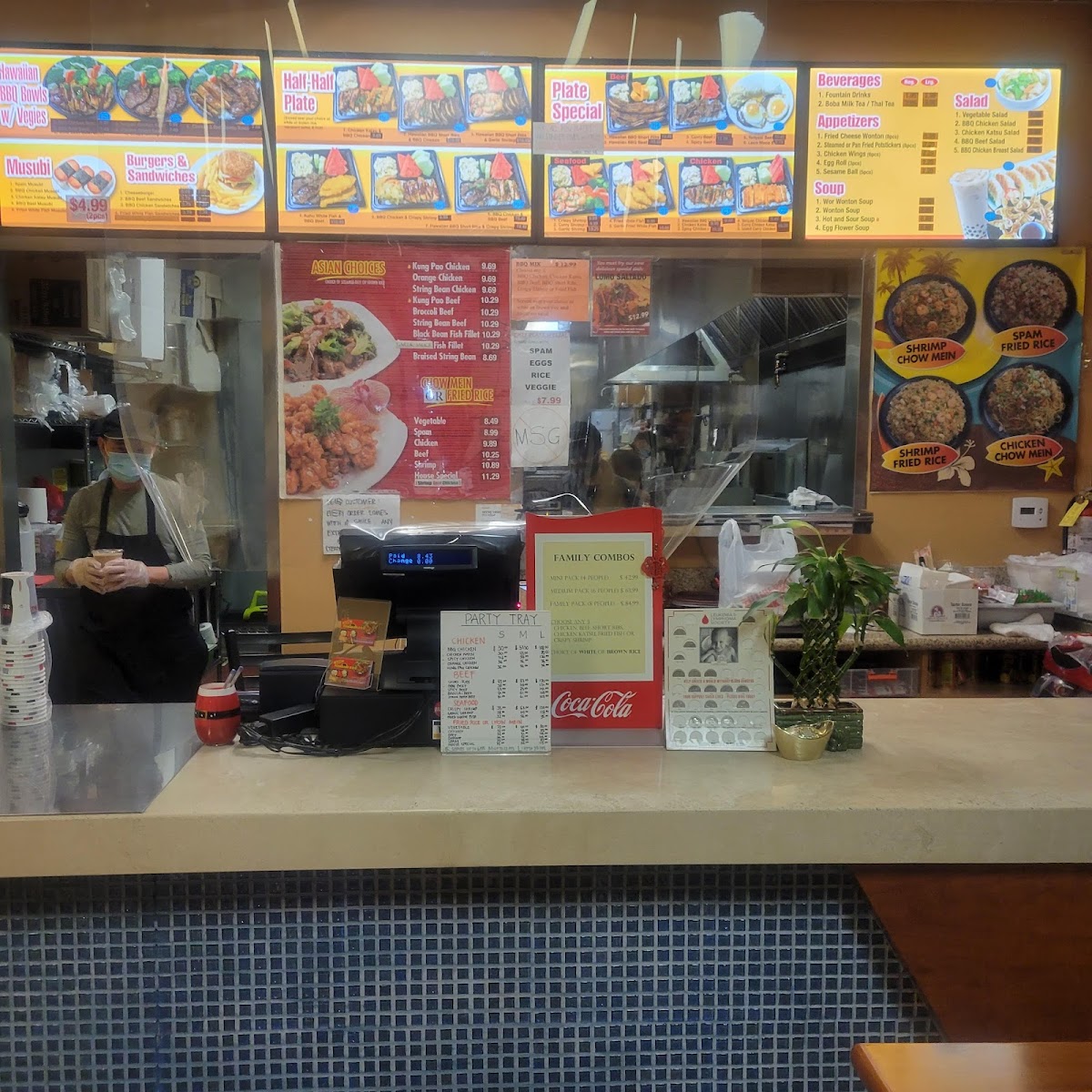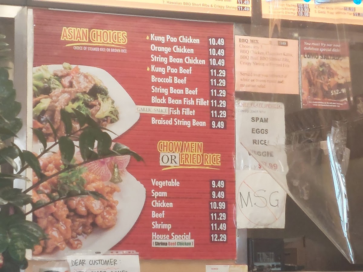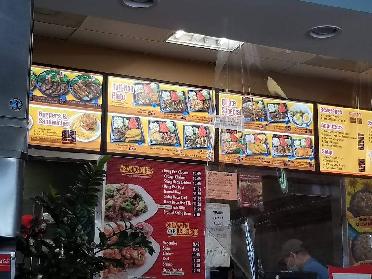 The menu at Kahu Hawaii B.B.Q. in San Dimas offers a diverse selection of Hawaiian-inspired dishes that cater to various tastes. For appetizers, you can enjoy items like 8 Pieces Fried Cheese Wonton for $5.99, 8 Pieces Pan Fried Potstickers for $6.99, or a savory 6 Pieces Chicken Wings for $7.99. The beef and seafood party trays feature flavorful options like Spicy BBQ Beef and BBQ Short Ribs, with seafood favorites such as Fried White Fish and Garlic Shrimp. For those craving noodle or rice dishes, the menu includes options like House Special Chow Mein ($8.99) and Shrimp Fried Rice ($7.99). The musubi selection includes classics such as BBQ Chicken Musubi ($2.99) and the Musubi Mix ($3.49). In the bowl section, there's the tasty BBQ Chicken Bowl ($7.99) and the rich Teriyaki Chicken Bowl ($8.49). The Asian Choices menu offers dishes like Black Bean Fish Fillet ($10.49) and Kung Pao Beef ($9.99). For plate meals, highlights include the Chicken Katsu Plate ($9.99) and Hawaiian BBQ Chicken Plate ($10.49). Sides are simple but satisfying, with Macaroni Salad ($2.99) and French Fries ($2.49). For larger gatherings, the party trays, such as the Teriyaki Chicken Party Tray ($35.99) and Fried Rice Party Tray ($29.99), provide generous portions. Additionally, the restaurant offers refreshing beverages like Thai Tea ($3.99) and Coconut Water With Pulp ($2.99). Whether you're in the mood for a quick snack or a hearty meal, Kahu Hawaii B.B.Q. provides a wide range of options to satisfy all appetites.