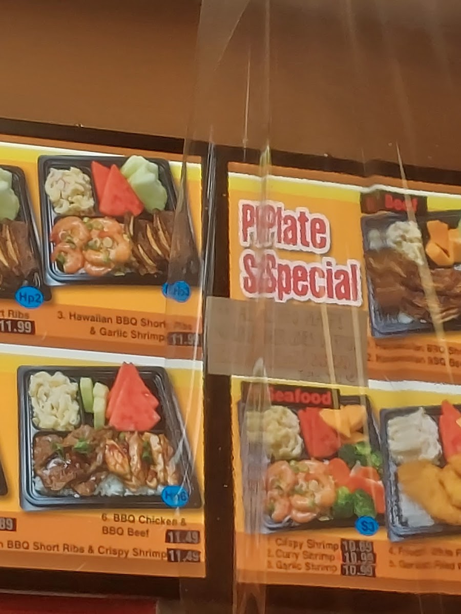 Served with choice of three proteins, choice of white or brown rice and macaroni salad.
